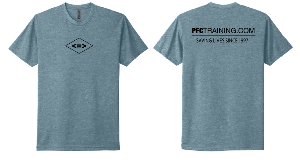 A new take on a PFC Classic! We're reintroducing this Throwback PFC "Saving Lives" Logo T-shirt. The front of the shirt features a centered PFC <=> Logo. The back features the sharp "Saving Lives Since 1997" PFC Training Logo.