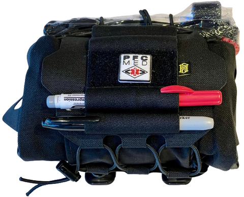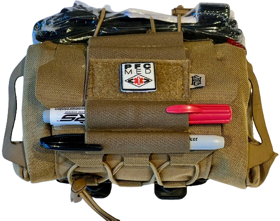 PFC Med Kits feature premium life saving medical components that address the leading causes of preventable combat death identified by Tactical Combat Casualty Care (TCCC) protocols. These critical tools enable responders to stop major bleeding, address penetrating trauma, and help prevent hypothermia when providing care at the point of wounding prior to transport to definitive care facilities. Includes PFC Med Patch.